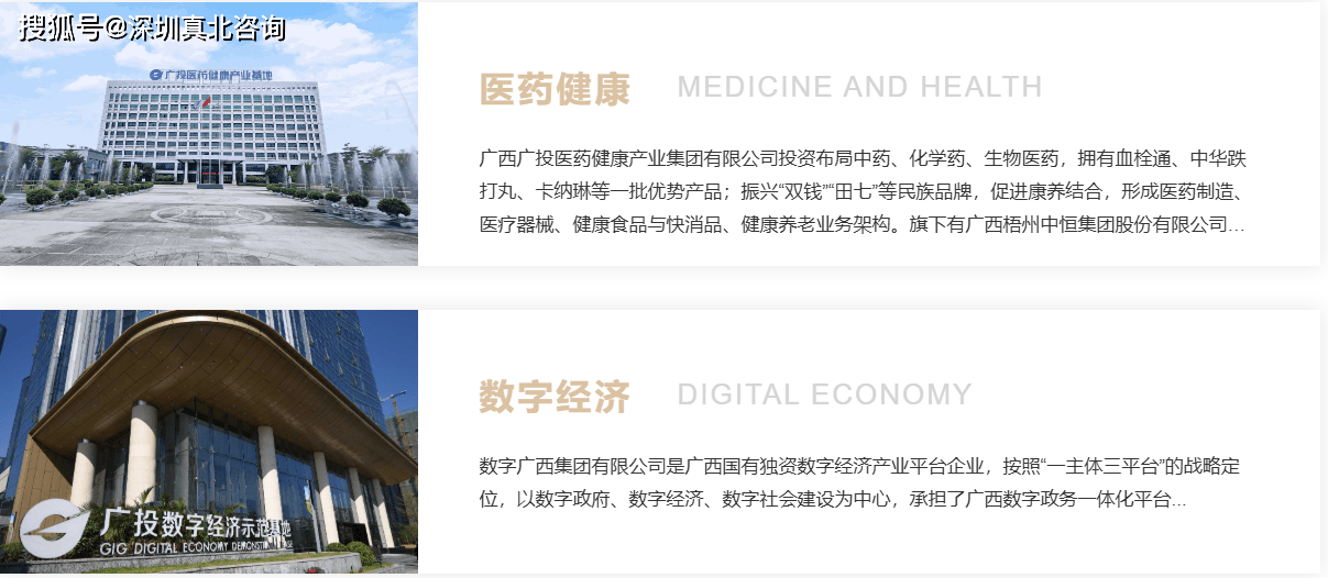 金融及现代办事业包罗,广西金融控股集团(筹)、银行、证券、安全、财产链办事、工程征询、食盐保供、聪慧运营。