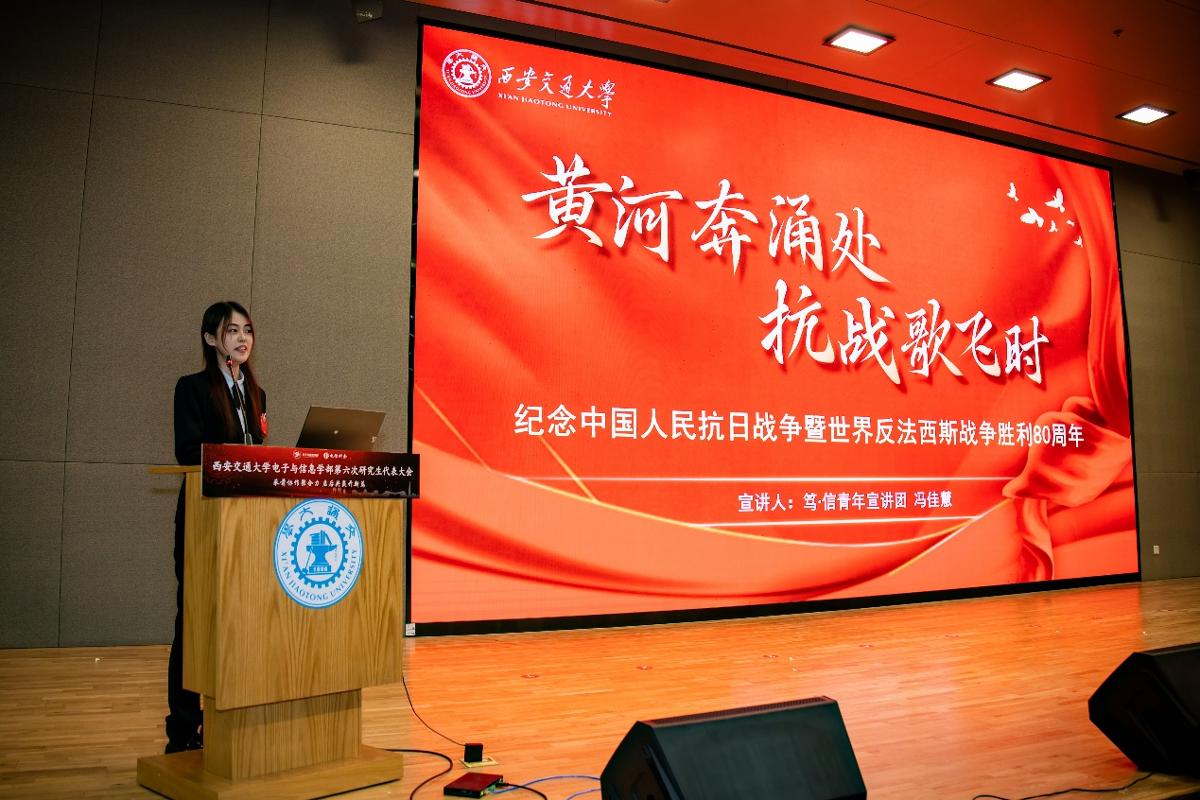 侯怡博同窗代表电信学部研究生会致大会闭幕词,号召取会的电信学部研究生代表该当西迁,罗致奋进力量,铭刻青年,做有担任的“交大人”,勤奋成为堪当平易近族回复沉担的时代新青年。