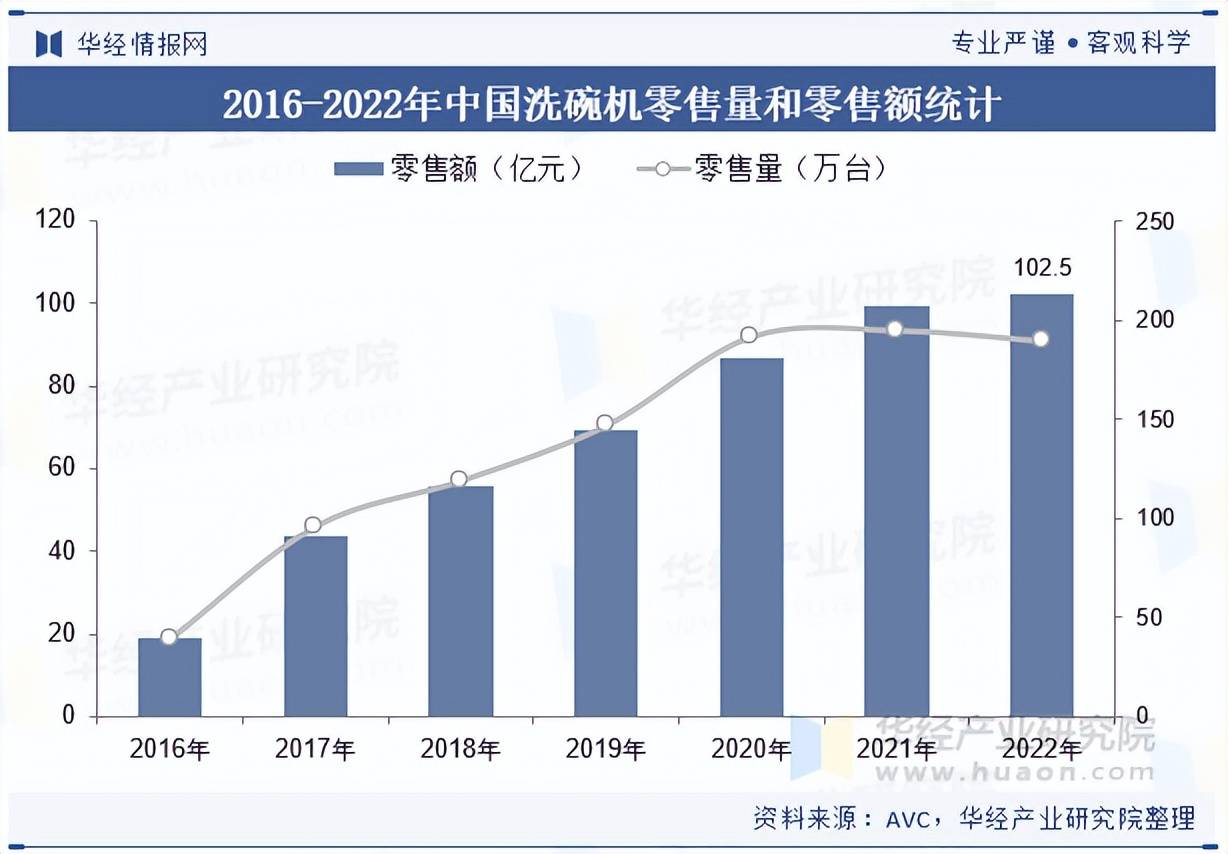 我国相对复杂的家庭户数体量意味着将来洗碗机仍有广漠的提拔空间,跟着国平易近消费的改变,国内洗碗机需求还将继续成长。据数据,中国洗碗机2022年市场规模达102。5亿元,同比增加43。5%。