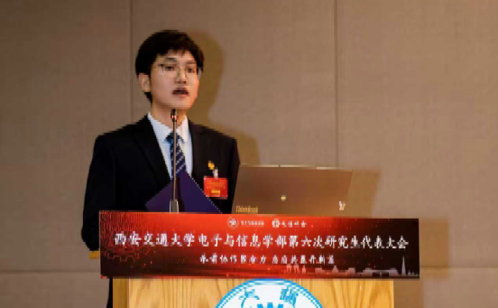 陈闯同窗做为电信学部研究生会代表正在大会揭幕致辞中,向出席本次大会的带领、教员及各取会代表暗示强烈热闹欢送和衷心感激。他提到,电信学部青年学子应以此次代表大会为新的起点,凝结力量、联袂同业,以昂扬向上的风貌驱逐将来的挑和,国度和人平易近的簇新篇章。