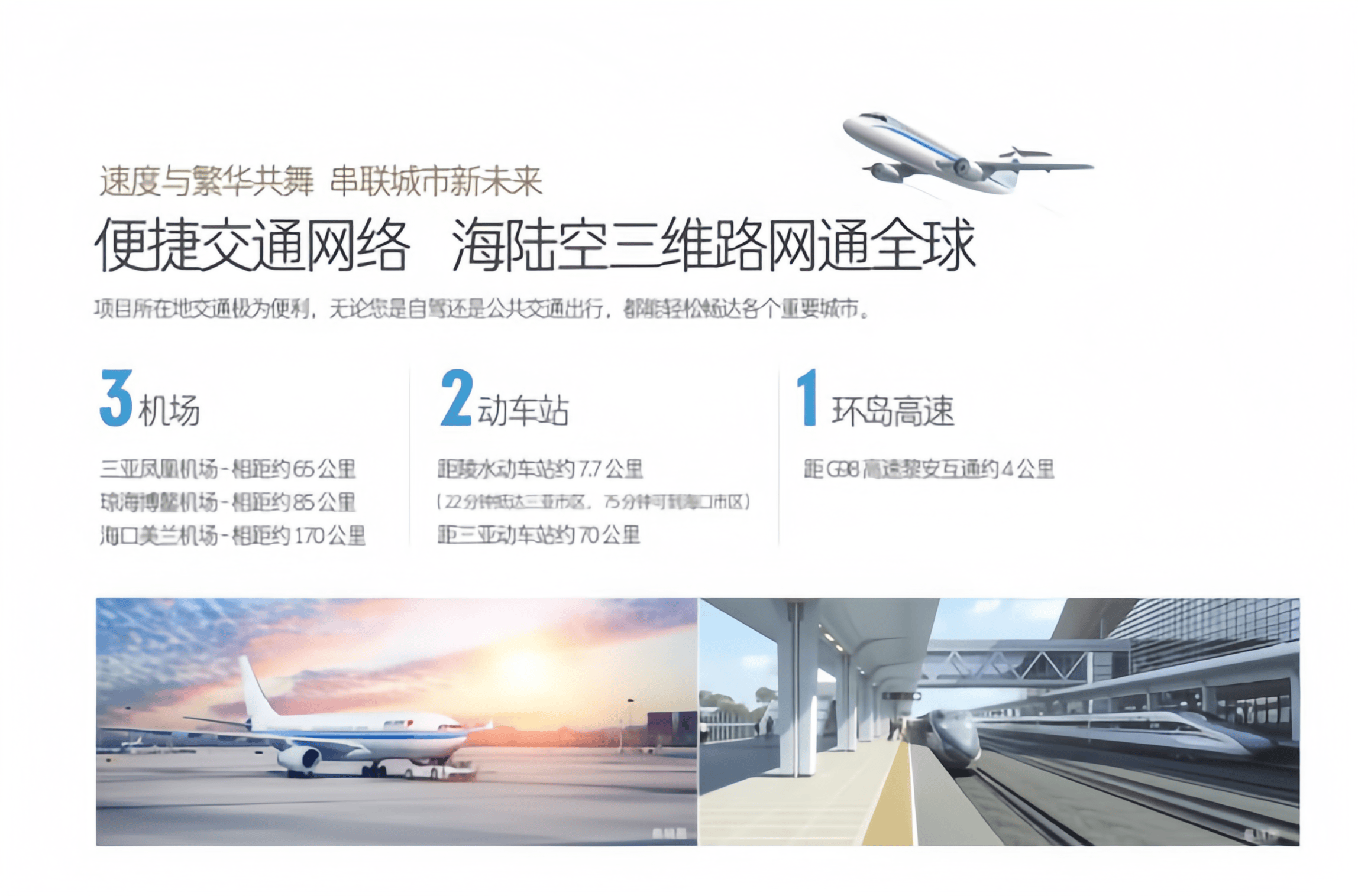 目前海南环岛动车已全线贯通,湾区内部市政公共交通、穿越巴士等均已投入运营,高效交通收集,让您畅逛岛表里。